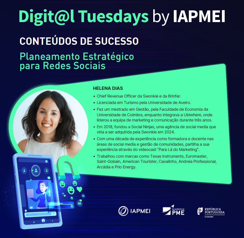 Neste ciclo de webinars será abordado o potencial das redes sociais numa perspetiva estratégica, desde a escolha das plataformas e dos conteúdos, o papel dos influencers, o acompanhamento das tendências, truques e dicas úteis.