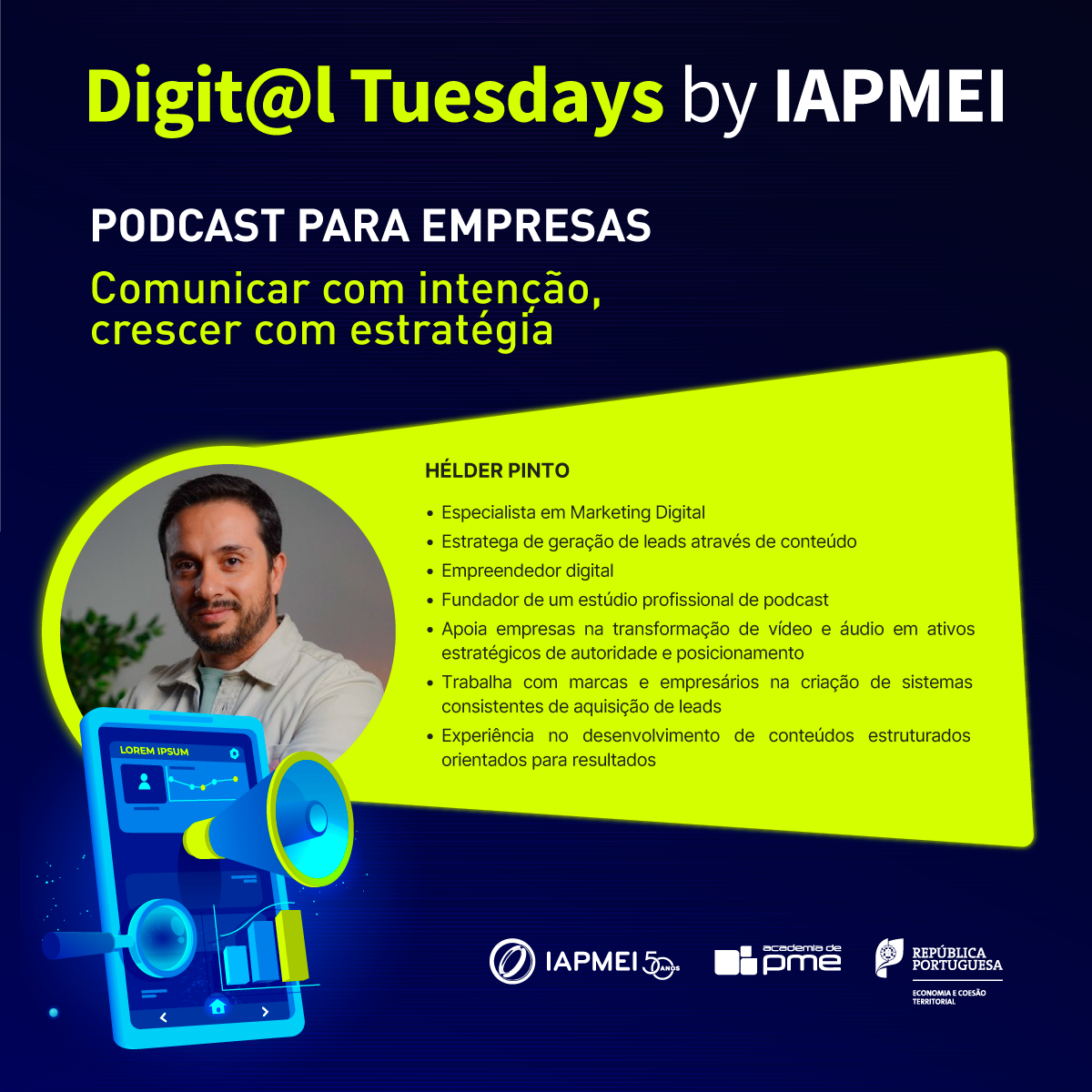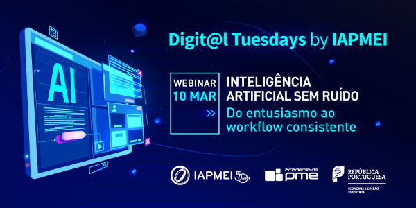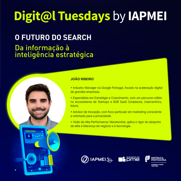Foi em 2023 que o IAPMEI começou a promover o ciclo de webinars “Digit@l Tuesdays”, um conjunto de sessões dirigidas a empreendedores e representantes de PME, com o objetivo de abordar os conceitos, as aplicações e os desafios de várias temáticas do ambiente digital relevantes para o desenvolvimento e sustentabilidade dos negócios.